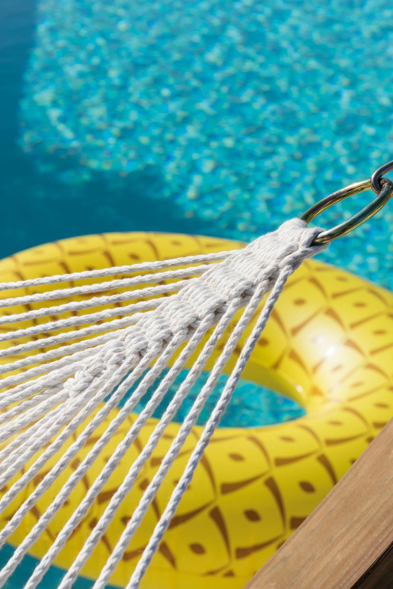 Berücksichtigen Sie den verfügbaren Platz und Ihren persönlichen Stil. Die Amanda Hängematte gibt es sowohl mit als auch ohne Gestell, sodass sie sich perfekt an Ihre Bedürfnisse anpassen lässt.