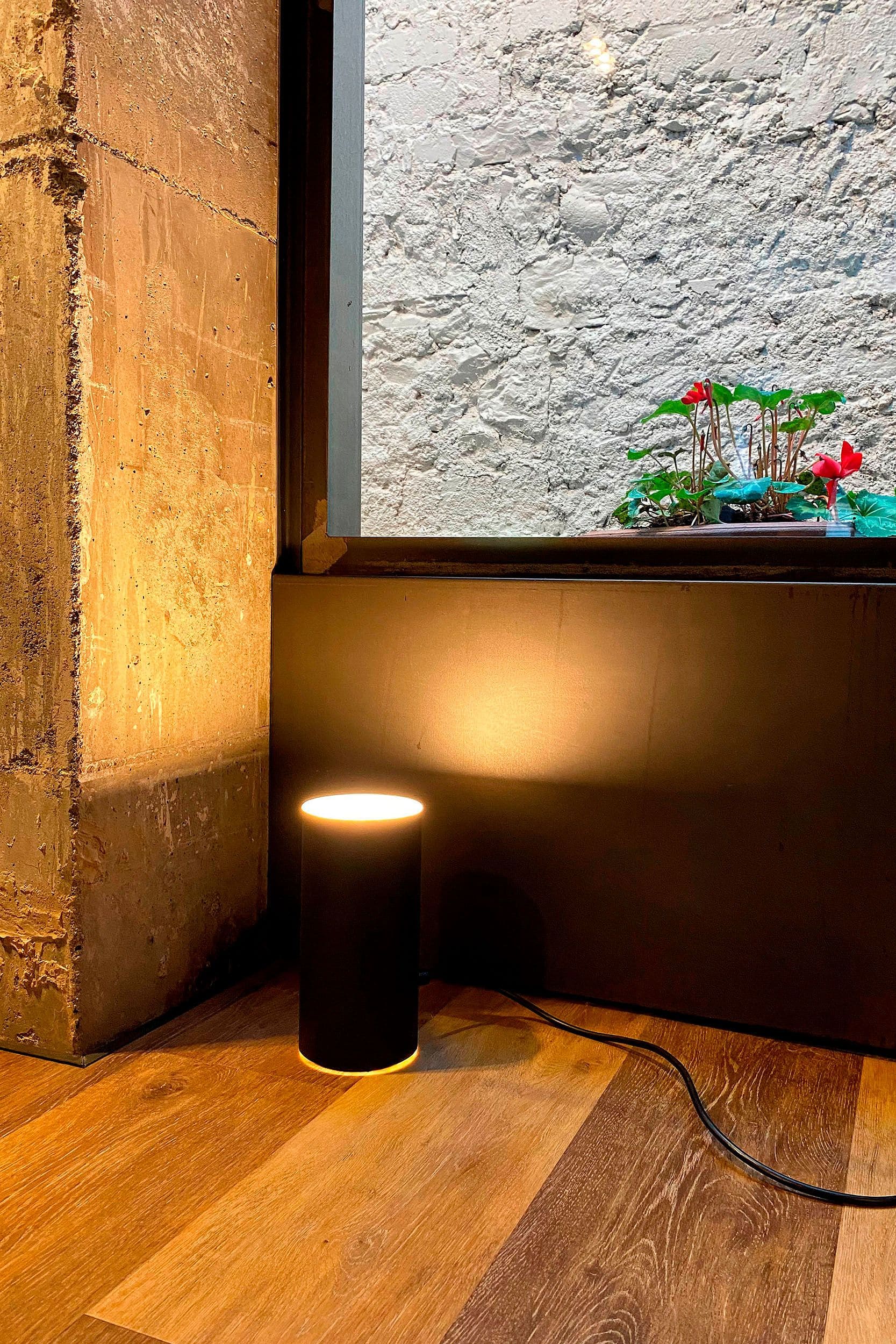 Die Cyls M-3906 Bodenleuchte von Estiluz verbindet minimalistisches Design mit funktionaler Beleuchtung. Entworfen von Mermelada Estudio, zeichnet sich diese Leuchte durch ihre schlichte Zylinderform aus, die eine direkte Lichtabstrahlung nach oben ermöglicht. Dank ihres kompakten Formats eignet sie sich ideal als stilvolle Akzentbeleuchtung für Wohnräume, Schlafzimmer oder Lounge-Bereiche.