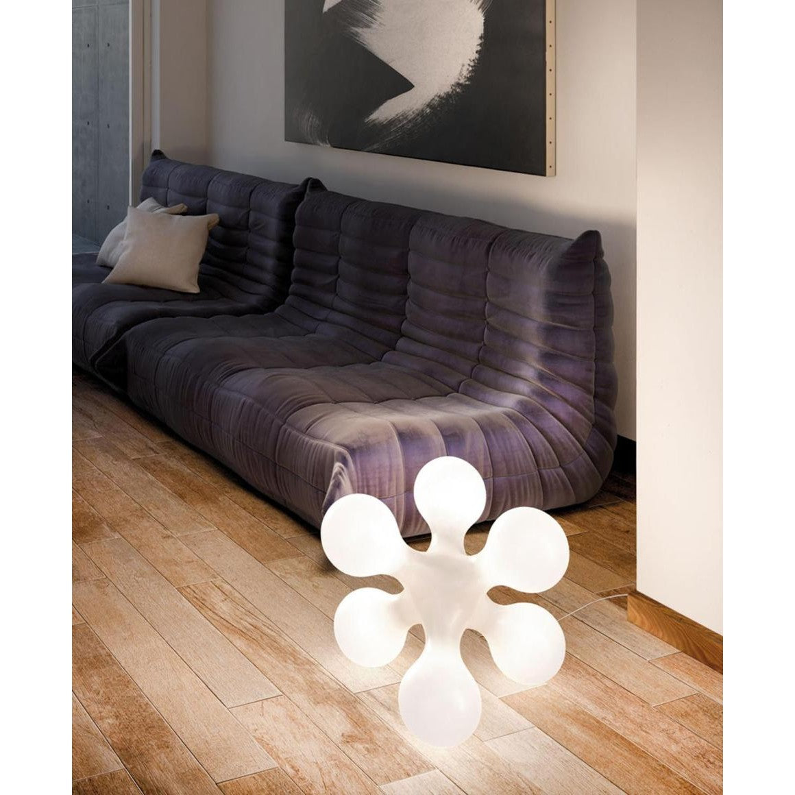 Die Atomium Bodenleuchte besticht durch ihre innovative Konstruktion aus hochwertigem Polyethylen, kombiniert mit einer ausgeklügelten internen Stahl-Federstruktur. Die sechs leuchtenden Köpfe in reinem Weiß schaffen ein faszinierendes Spiel aus Licht und Form, das jeden Raum in eine besondere Atmosphäre taucht. Die Vielseitigkeit der Leuchte zeigt sich in ihrer flexiblen Verwendung als Boden- oder Tischleuchte, wodurch sie sich perfekt verschiedenen Raumsituationen anpasst. Mit ihrem skulpturalen Charakter wird die Atomium nicht nur zur Lichtquelle, sondern zum modernen Designobjekt, das auch unabhängig von ihrer Beleuchtungsfunktion die Blicke auf sich zieht.